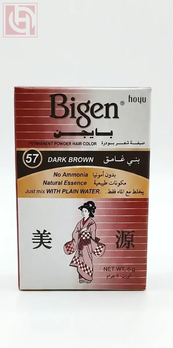 Bigen powder dye shade 57 (Dark Brown) is the ideal choice for those looking for a natural and easy-to-use dye, especially since it doesn’t require developer (just mix with water)
