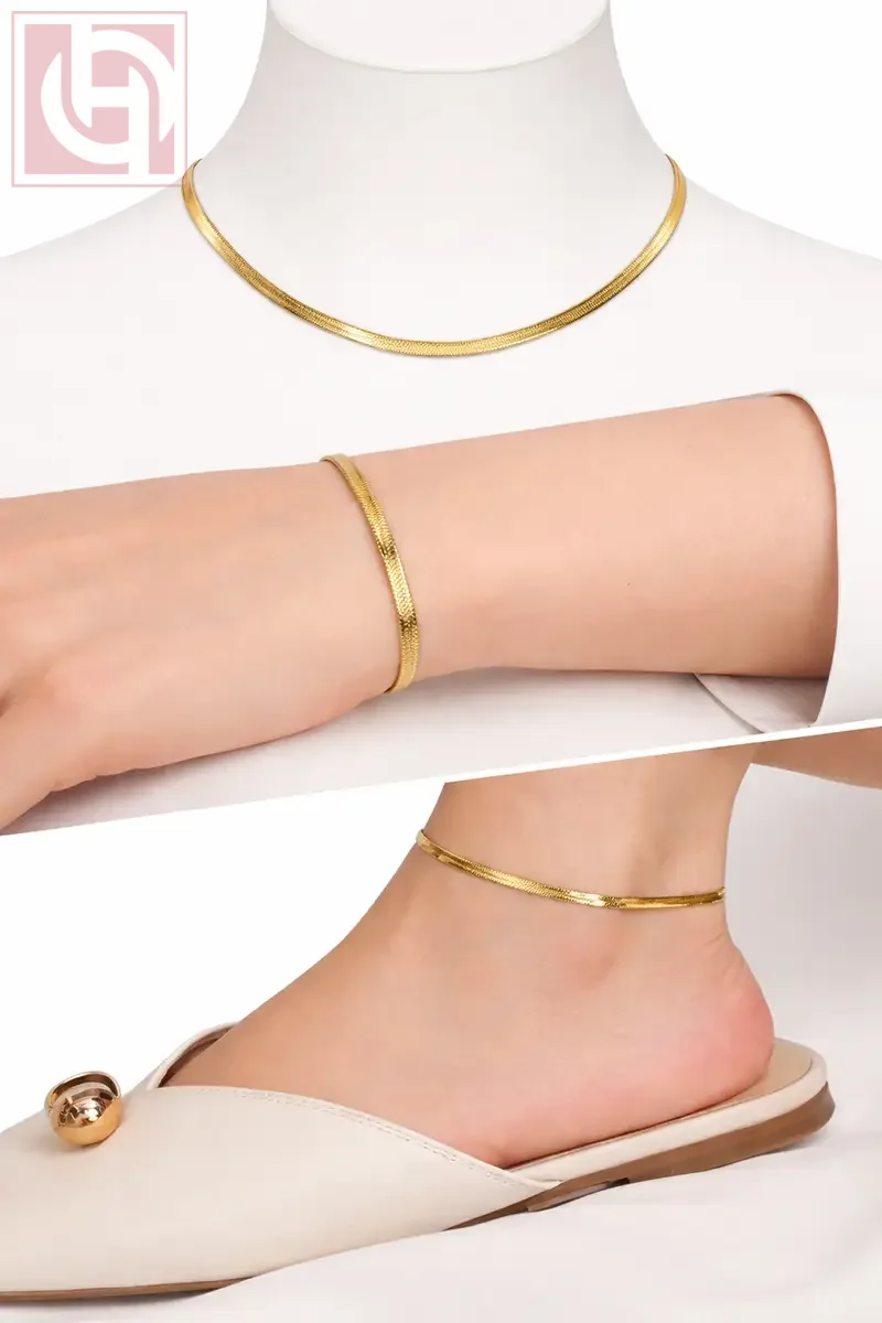 وفري حيرتك في التنسيق واحصلي على الإطلالة الذهبية الكاملة! طقم ظهر الحية الأكثر مبيعاً يجمع لكِ (سلسلة + انسيال + خلخال) في عرض واحد. تصميم انسيابي ساحر يعكس الضوء مع كل حركة، ليمنحكِ مظهراً ملكياً بلمسة عصرية من أورجينال هبز