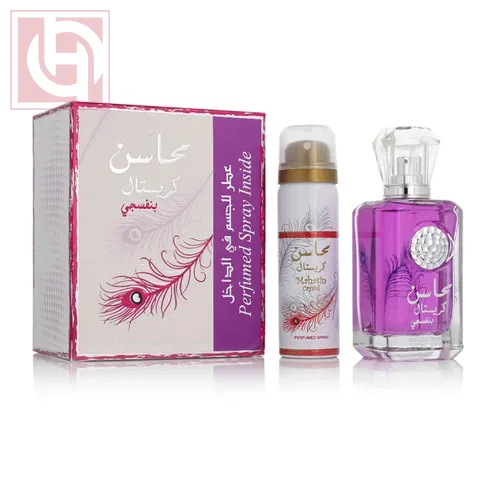 عطر محاسن كريستال بنفسجى او دو برفيوم 100مل+ اسبراى للجسم 50مل من لطافة
